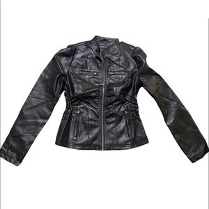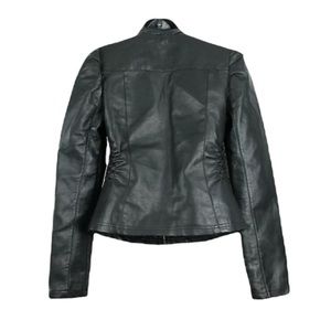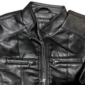 •ASOS - NEW LOOK - Faux Leather Puff Sleeve Zip Jacket with Stretch Bodice•