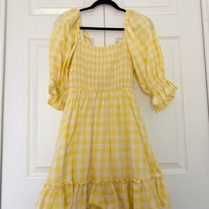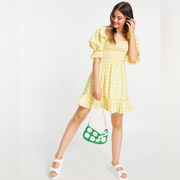 ASOS NEW LOOK | Tie Back Shirred Smocked Dress in Yellow Gingham.