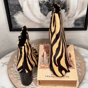 ASOS Calf Fur Tiger Print Ankle Boots Size 5 - absolutely perfect! 👌 The Y2K look. The website states these are genuine calf fur; some people use the term “pony fur”. These have never been worn, and the condition is mint. These are perfect for fine dining, dinner shoes, nightclub, dancing, and Y2K parties! 🎉 The animal prints were hot during the Y2K era. I have a smoked free home and ship quickly usually in about 24 hours. I’m a 5 ⭐️⭐️⭐️⭐️⭐️ seller.