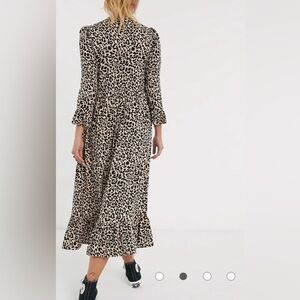 ASOS NWOT Leopard Animal Print Prairie Button Up Tiered Smocked Maxi Dress Size 6