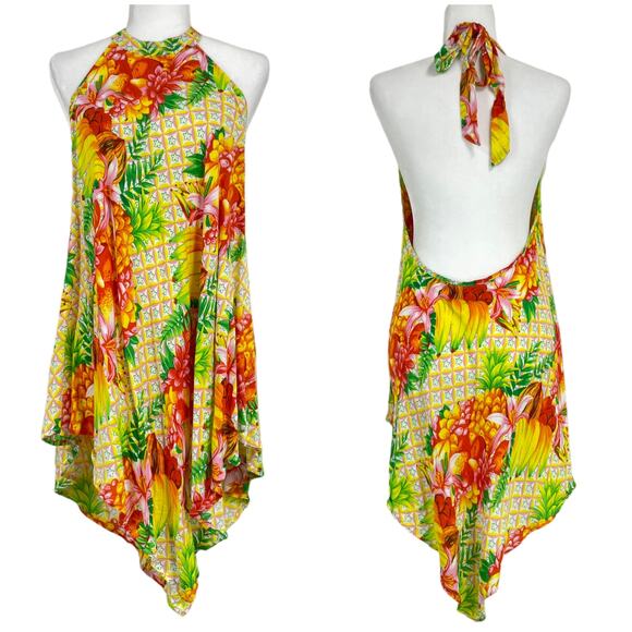 ASOS NWT High Neck Hanky Hem Brach Coverup Dress Tropical Print Size 10 NO BELT