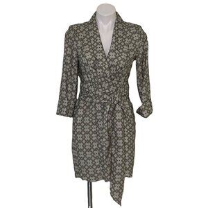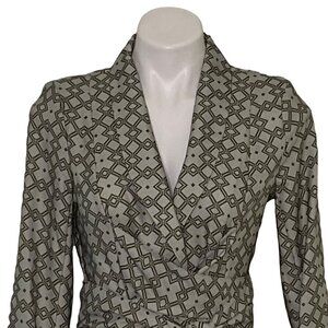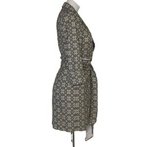 ASOS NWT Monogram Print Mini Tux Dress, Gray Khaki Cuffed Sleeves Women's 6 (US)