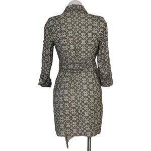 ASOS NWT Monogram Print Mini Tux Dress, Gray Khaki Cuffed Sleeves Women's 6 (US)