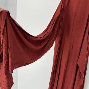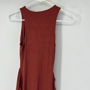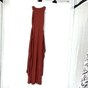 ASOS NWT high neck tie maxi dress women’s 0 stretchy. Pit to pit measures 15 inches. Shoulder to hem measures 57 inches. Burnt orange color.