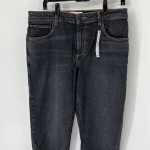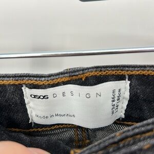 ASOS NWT men’s tapered jeans 34X34 waistband lying flat measures 16.5 inches. Inseam measures 32 inches. Leg opening measures 6.5 inches