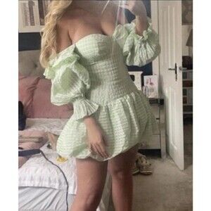 ASOS Navy Dotted Pleated Tank Dress Layered Ruffle Top 8 Medium