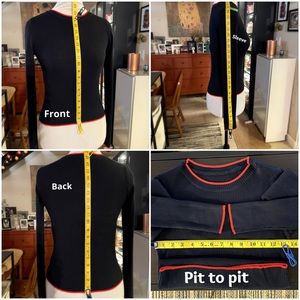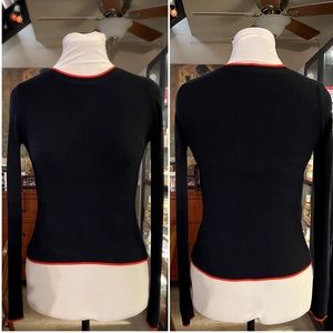 Navy ribbed sweater with red contrast trim