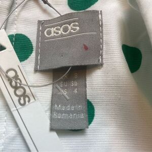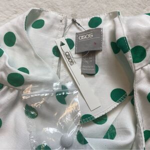 ASOS New With Tags White Green Polka Dot Dress Size 4