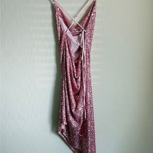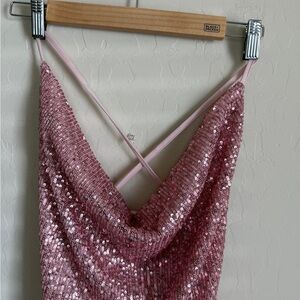 ASOS Nordstrom sequin 90s dress cowl neck slip midi pink homecoming US size 12