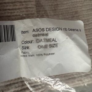 ASOS Oatmeal Ribbed Beanie