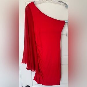 ASOS One Shoulder Red Ruched Mini Dress Size 4 Valentines Core Formal EUC!
