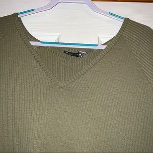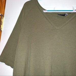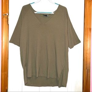 Preowned but in EUC. Color is olive. This has an oversized fit so it's relaxed. Ribbed tee. Side slits. V-neck. 78% viscose, 14% polyester, & 8% spandex. ❌NO TRADES❌