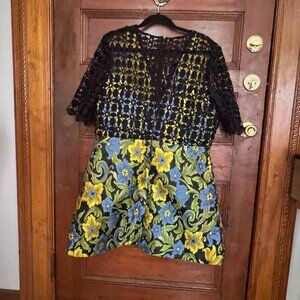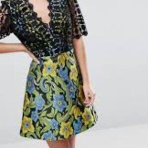 ASOS PREMIUM Lace Top Jacquard Mini Skater Dress - Multi / US 14