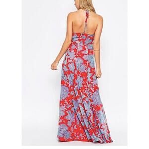 ASOS Paisley Cut Out Maxi Dress Halter Womens Size 4 Red Blue Flowy Resort