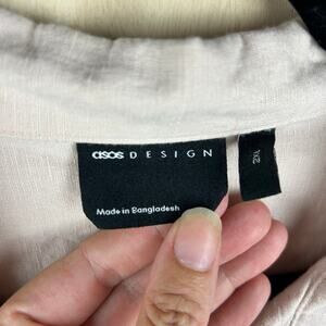 Lightweight and breathable, this ASOS button down shirt in a soft pale pink is made from a comfortable linen and cotton blend. Ideal for warm weather, casual outings, or dressed-up summer looks.