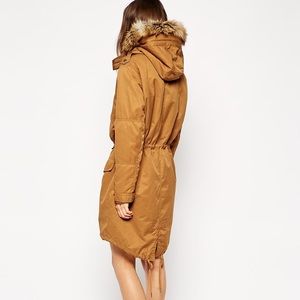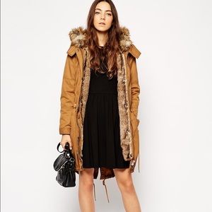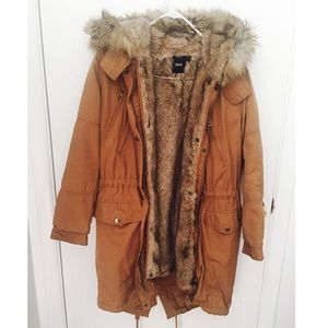 In very good condition. No sign of wear. Warm enough for the freezing winter. Also, the fur lining can be detached for the spring weather. It's a multifunctional parka! Cute tobacco color. (Uk 6/ eu 34 / us 2)