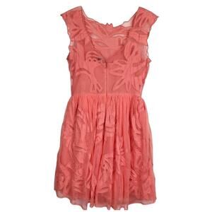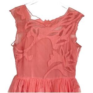 Gorgeous Coquette Girl ASOS Peach Lacy Mesh Fit & Flare Dress fitted bodice with wonderful full skirt, back zipper.