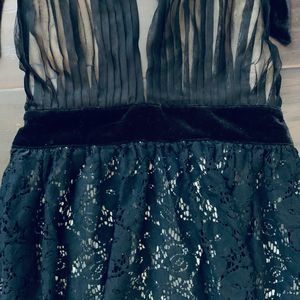 ASOS Petite Black & Cream Sheer Lace Open Back Halter Top Prom Dress | Size: 6/8