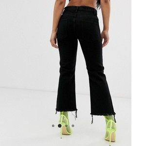 ASOS DESIGN Petite Egerton rigid cropped flare jeans in washed black with raw hem