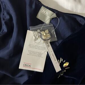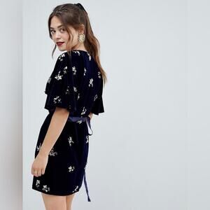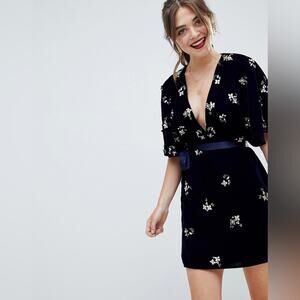 ASOS Petite Floral Beading Wrap Low Cut Velvet Mini Dress NWT Sz. 4