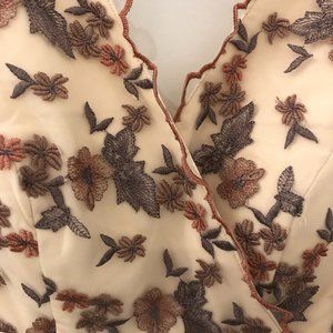 A sleeve beige dress with beautiful floral embroidery.