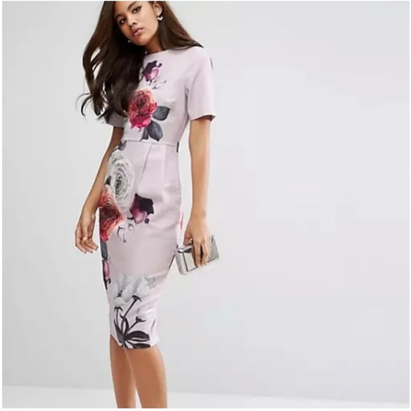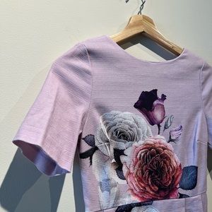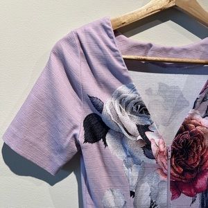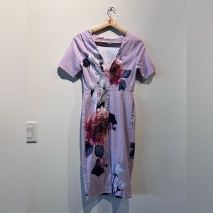 ASOS Petite Floral Sheath Dress V Back Purple Size US 2 XS