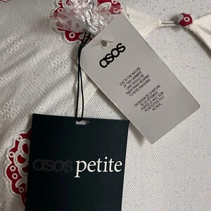 ASOS Petite • NWT Red Embroidered White Fit and Flare Dress