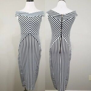 ASOS Pin-Up Stripe Bodycon Dress Off Shoulder Stretch Size 4 Retro Chic Siren