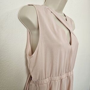 Light pink sleeveless v neck tunic top with asymmetrical hem and elastic waist. Has a long piece of fabric on one shoulder that can be used multiple ways. Size 6. EUC.