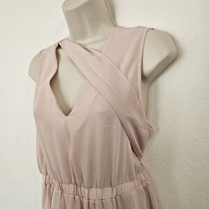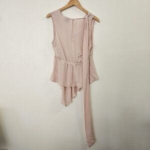 Light pink sleeveless v neck tunic top with asymmetrical hem and elastic waist. Has a long piece of fabric on one shoulder that can be used multiple ways. Size 6. EUC.
