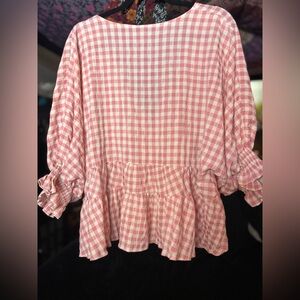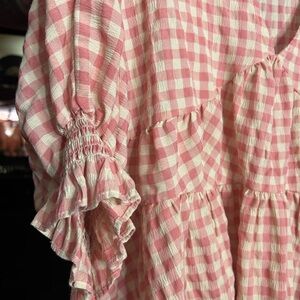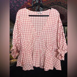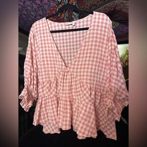ASOS Pink Checkered Ruffle Blouse