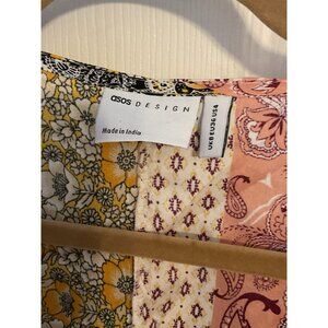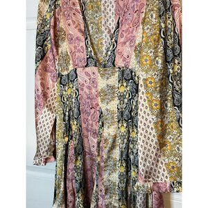 ASOS Pink Gold Satin Paisley Long Sleeve Dress Boho Mixed Pattern V-Neck Size 4