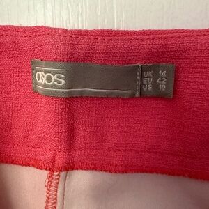 These ASOS shorts feature a high waist and a tailored, structured design in a vibrant pink color. Made from a crisp, non-stretchy fabric, they offer a clean, minimalist look perfect for casual or semi-casual occasions. The mid-thigh length and fitted waistband provide a modern, classic cut.