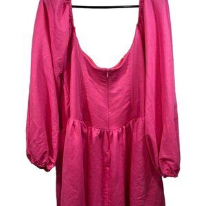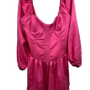 Chic pink mini dress. Long puff sleeves. Sweetheart neckline. Perfect for any occasion.
