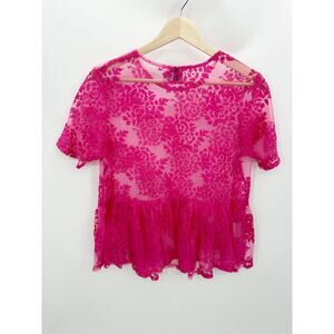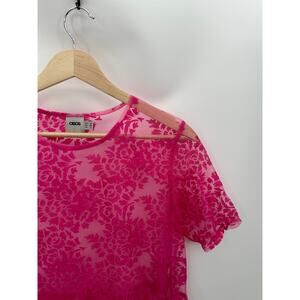 ASOS Pink Sheer Floral Short Sleeve Crew Neck Babydoll Top Women's Size 2