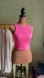 This vibrant pink crop top from ASOS features a sleeveless design and a fitted silhouette, perfect for a stylish and comfortable look. The high neckline and wide shoulder straps add a touch of sporty elegance, making it ideal for casual wear or layering. Its stretchy fabric ensures a snug fit, making it a versatile addition to any wardrobe.