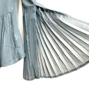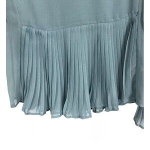 ASOS Pleated Blouse Turquoise Blue / Green Top Peplum Hem Semi Sheer Flared Sz 2.