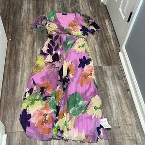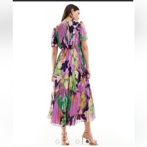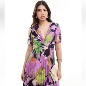 ASOS Pleated Floral Flutter Short Sleeve Midi Dress NEW 6