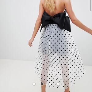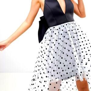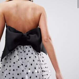 Gorgeous ASOS Polka Dot Halter Black Bow Dress Size 2