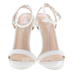Blink features a round clear perspex round block heels, open toe and barely there upper in a white mock croc material.