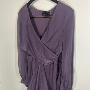 ASOS Purple Sheath Dress with Bishop Sleeves and V-Neck
