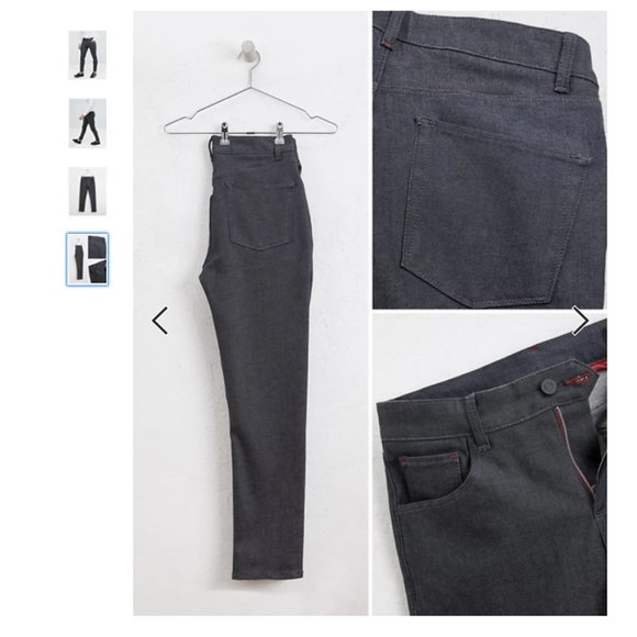 Like new raw grey denim from ASOS. Dark grey color with denim texture. Denim is thick and fairly stiff with some stretch. Red accents are dope.