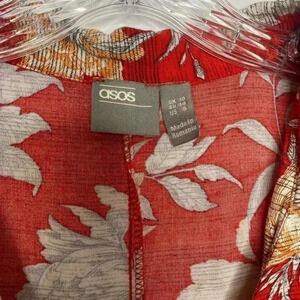 ASOS Red Button Front Tea Playsuit Romper in Floral Tropical Print
