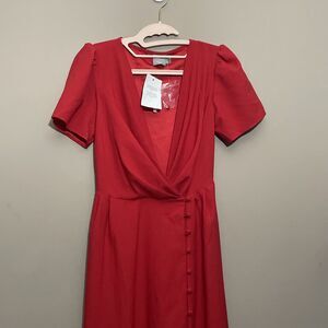 ASOS Red Button Through Wrap Top V Neck Short Sleeve Maxi Tea Dress NWT Size 0