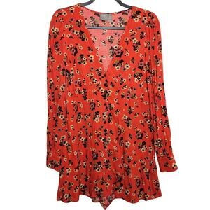 ASOS Red Ditsy Floral Button Front Romper Size 4 Playsuit Flirty Summer Casual