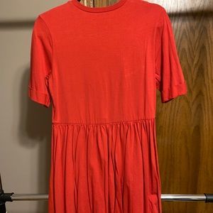 Red Dress. Cotton fabric. T shirt like dress with fuller skirt. Worn once. Size 4