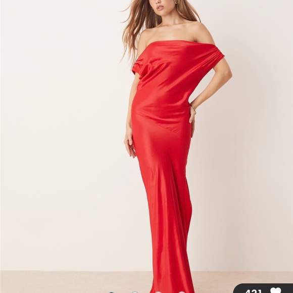 Chic red one shoulder dress by ASOS. Sleek and stylish for any event. Size is a 4 but does fit a loose on the shoulder part. Brand new with tags, never worn.