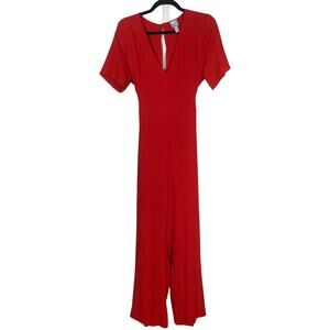 ASOS Red Plunging Backless Tied Waist Wide Leg Jumpsuit SZ 10