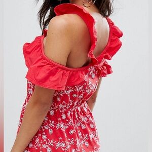 ASOS Red Ruffle Cold Shoulder Embroidered Dress