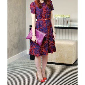 NWT ASOS Red and Blue Print Open Back Belted Midi Dress